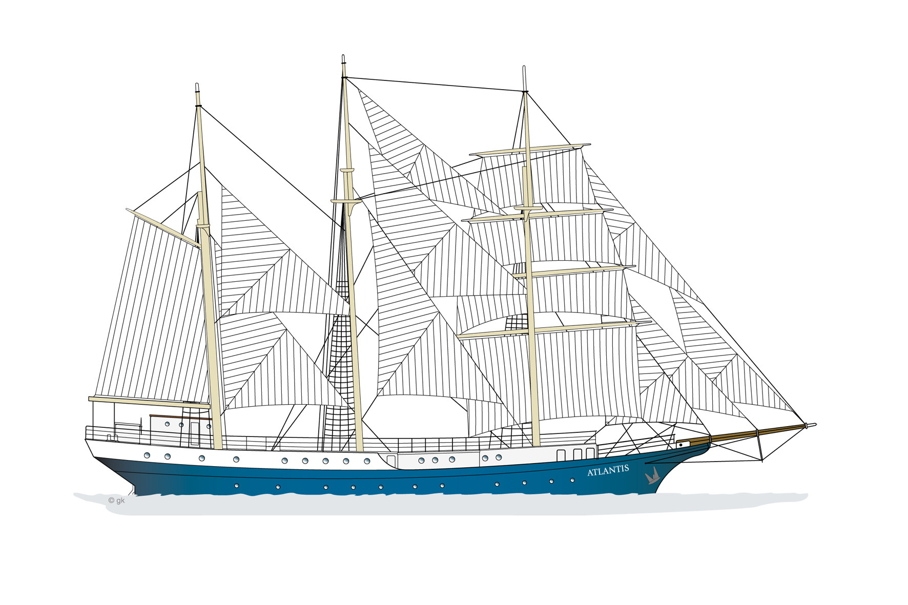 : Three-Masted Square-Rigged Barquentine Tall Ship |